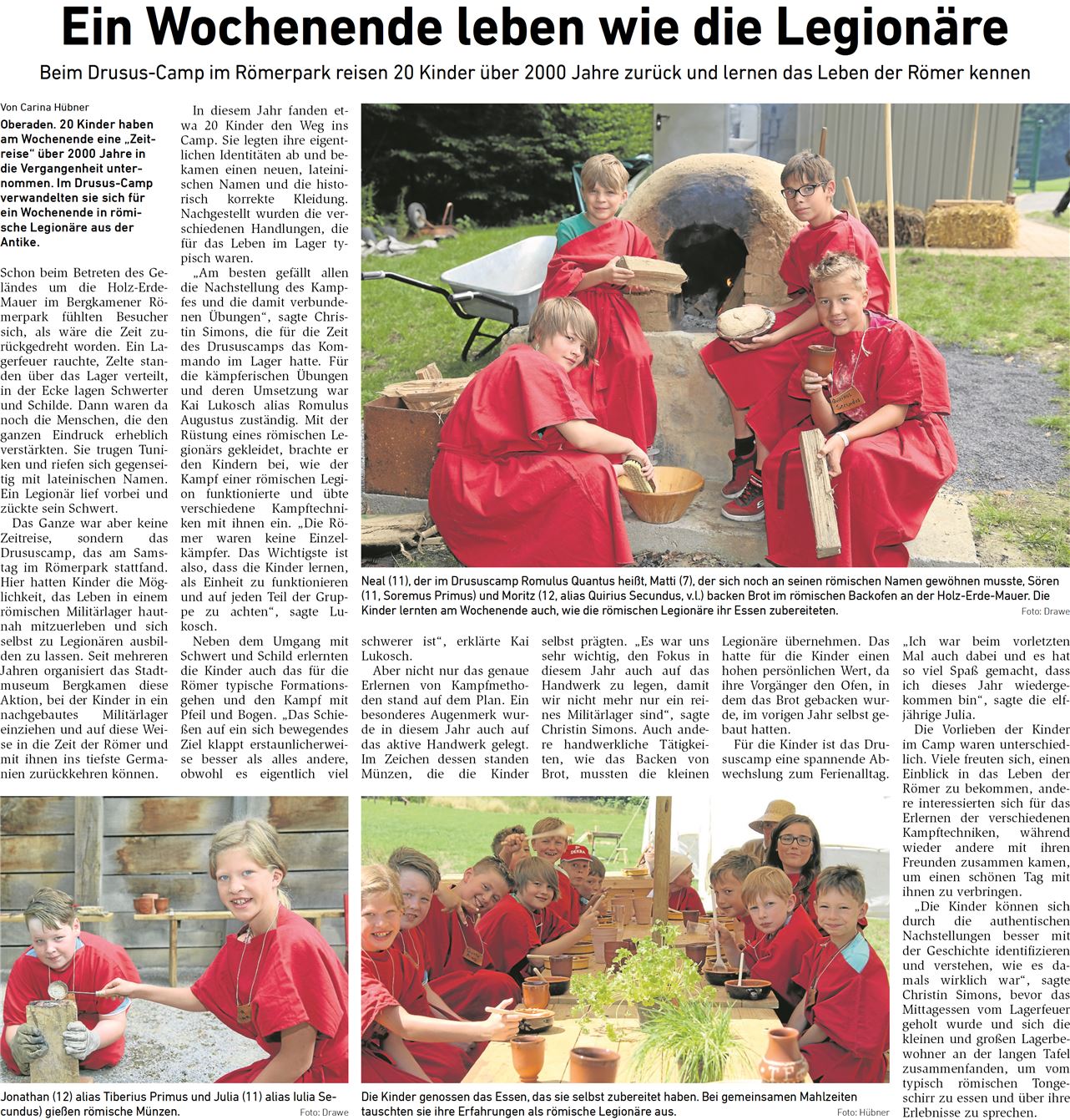 Beim Drusus-Camp im Römerpark reisen 20 Kinder über 2000 Jahre zurück und lernen das Leben der Römer kennen...